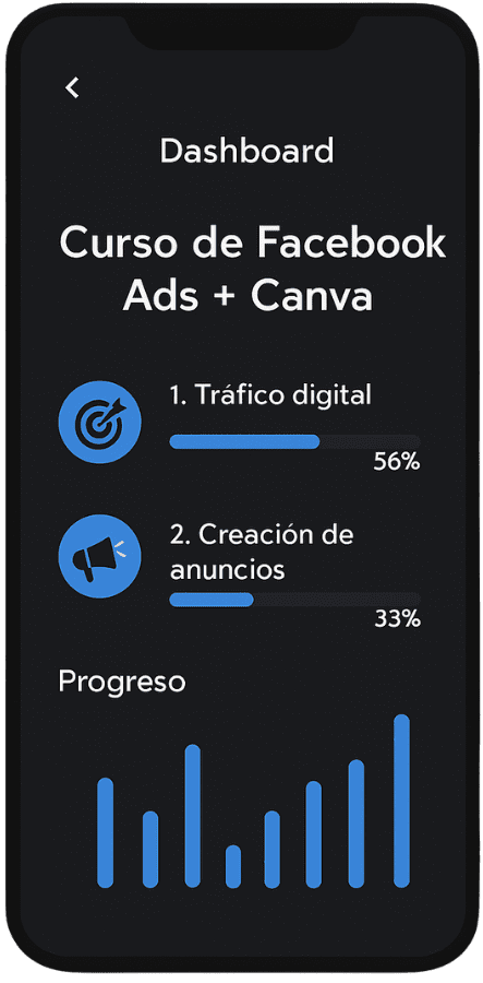 Este pack combina lo mejor del diseño y la publicidad digital: aprenderás a crear piezas profesionales en Canva y a lanzar campañas efectivas en Facebook Ads. Todo explicado paso a paso, desde cero, para que puedas hacer crecer tu marca o negocio sin complicaciones
